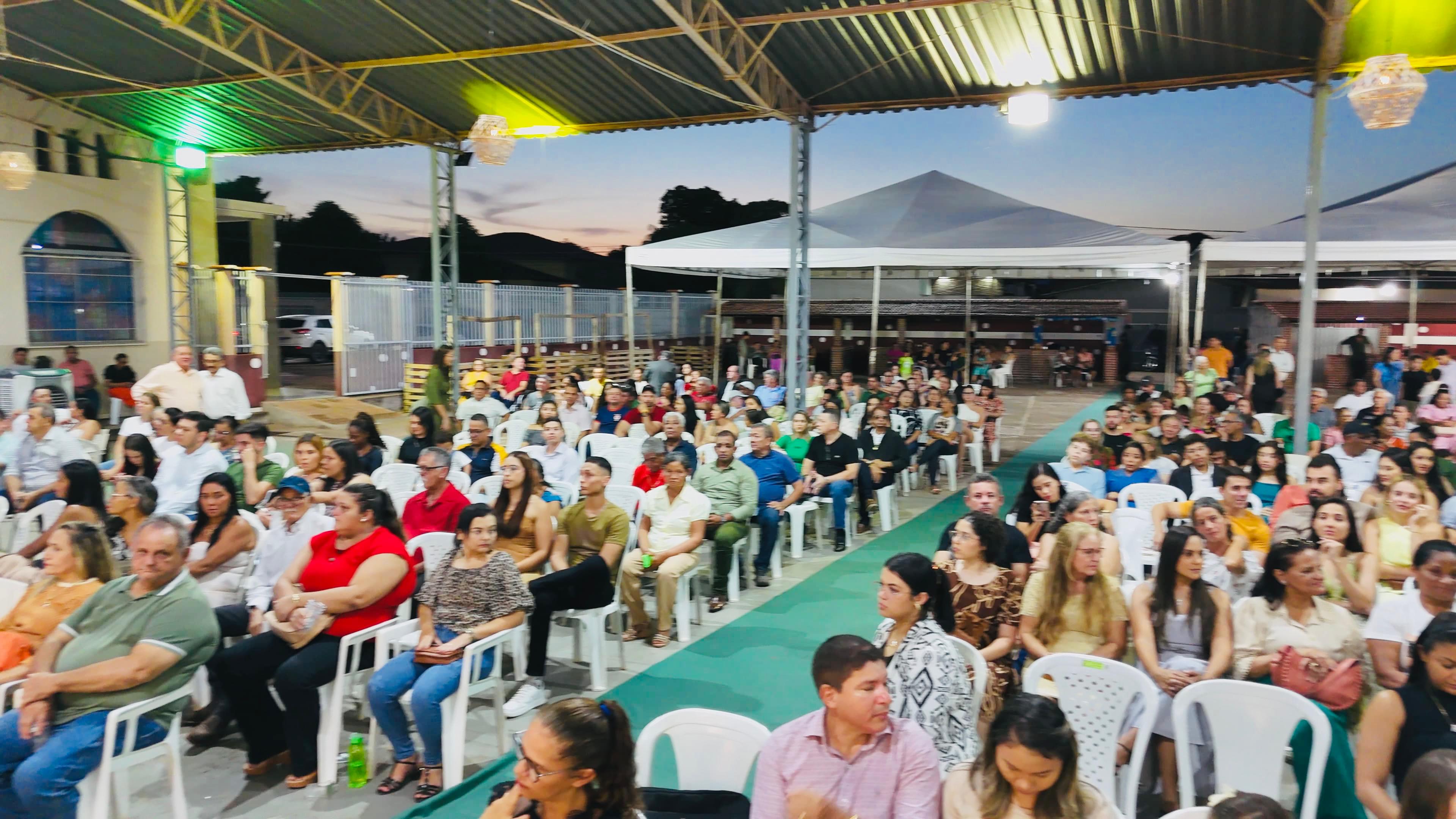 A cerimônia aconteceu na quadra da Igreja Matriz e reuniu autoridades, lideranças comunitárias e a população em geral.