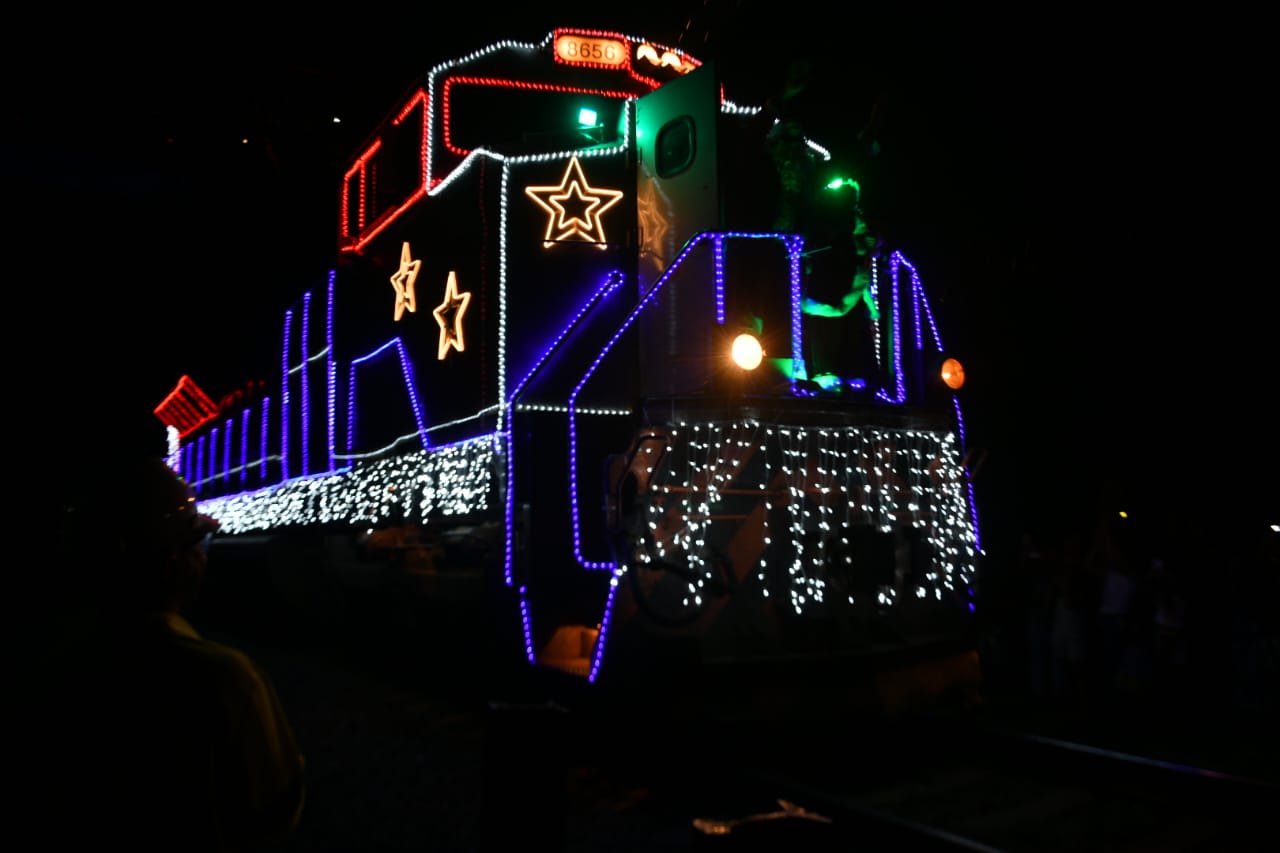 O trem colorido e iluminado percorreu a ferrovia Norte-Sul, transformando-a em um verdadeiro corredor de sonhos.