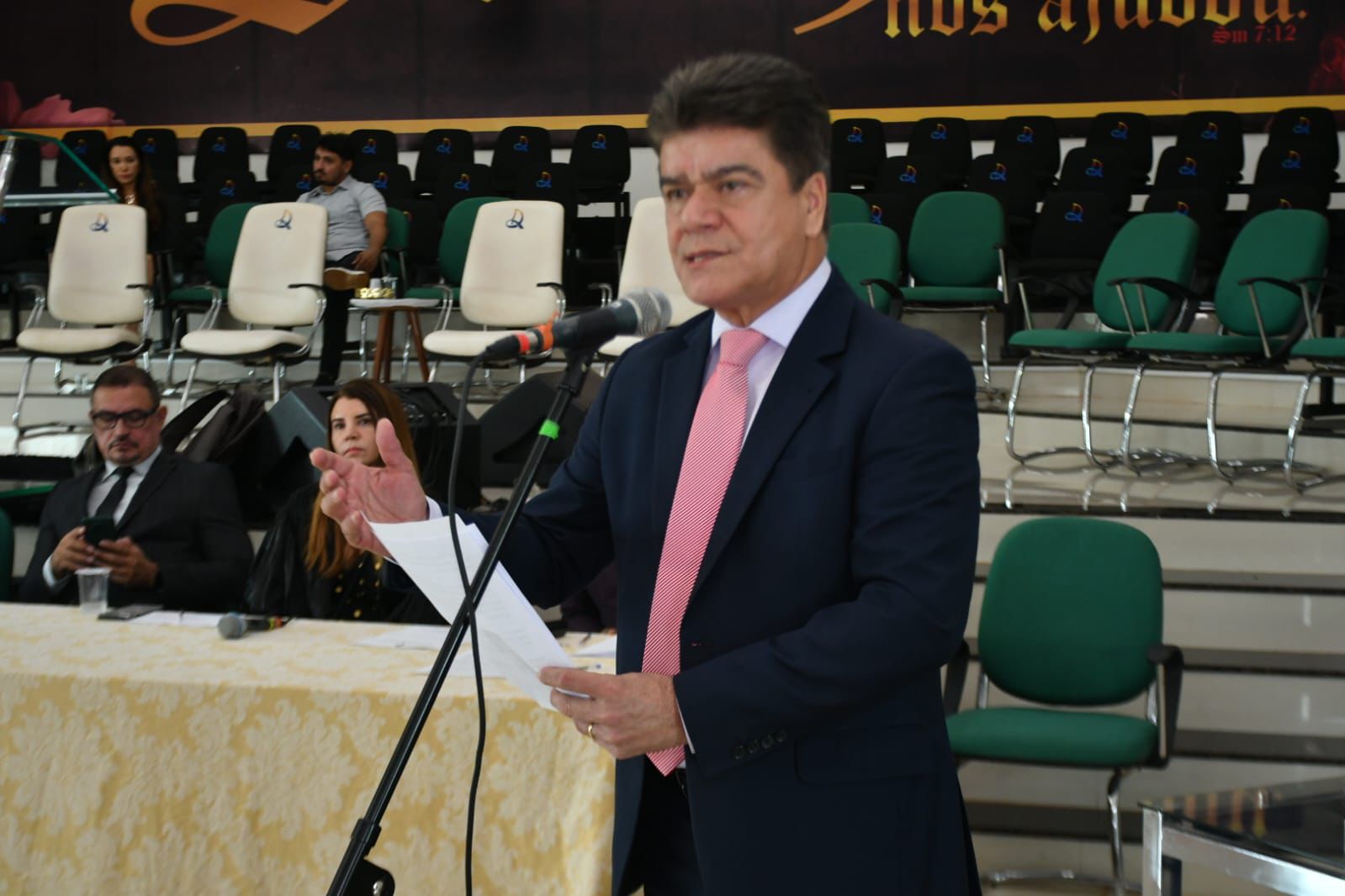 A Sessão Solene de Diplomação dos Eleitos, Reeleitos e Suplentes do Pleito de 2024, realizada na Igreja Assembleia de Deus, foi conduzida pela juíza da 46ª Zona Eleitoral, Dra. Alessandra Lima Silva.