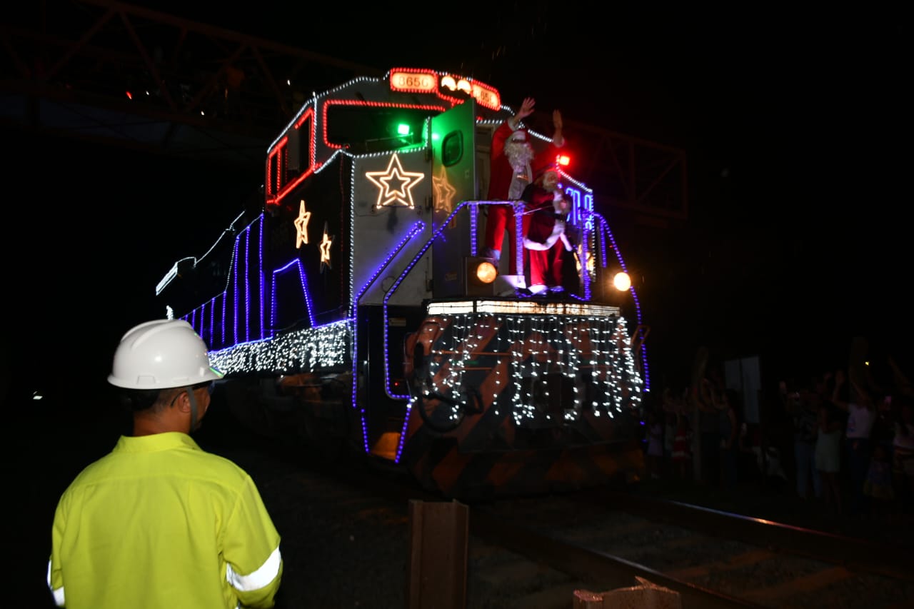 O trem colorido e iluminado percorreu a ferrovia Norte-Sul, transformando-a em um verdadeiro corredor de sonhos.